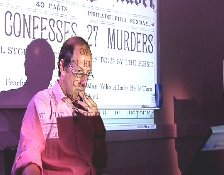 SCRIPT CLICK PIX TO VIEW FULL-SIZE. Part One NARRATOR: IN 1995, A NEW JERSEY COLLECTOR BOUGHT A BATCH OF 100-YEAR-OLD WAX CYLINDER RECORDINGS. WHEN HE PLAYED THEM, HE HEARD MORE THAN THE TUNES HE'D BARGAINED FOR. ONE RECORDING WAS OF A MAN ADMITTING TO MULTIPLE MURDER. Imitation of wax cylinder voice: I regret only one murder and that was of Minnie Williams - because I think I loved her, loved her. NARRATOR: THE CONFESSION WERE MADE BY A DOCTOR, HH HOLMES, DAYS BEFORE HE WAS HANGED. Cylinder voice: I was born with the Devil in me. |