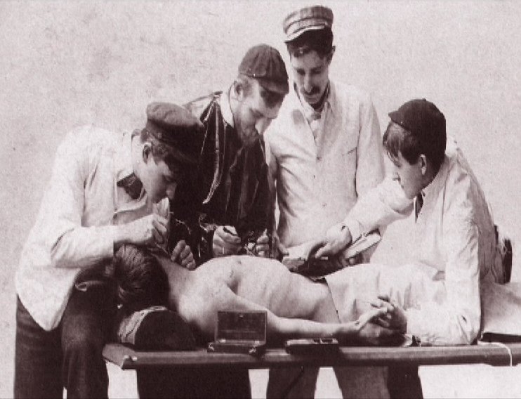 FOR MUDGETT'S DREAM HOME. HE STARTED OUT WITH A DRUG STORE, AND BARBER SHOP WHILE HIS BUILDING ROSE. HE'D CALL THIS TURRETTED, 3 STOREY EDIFICE HIS "CASTLE" AND FILL IT WITH THE LATEST INVENTIONS SUCH AS GAS LIGHTING. THE GADGETS WOULD BE PUT TO WORK IN HIS NEW PROFESSION. HERMAN MUDGETT WAS REBORN AS A HOMICIDAL ENTREPRENEUR - HH HOLMES.