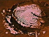 THE FORMS, NICKNAMED CLARKE TREES, HAVE BEEN SPOTTED IN AT LEAST FOUR POLAR VALLEYS. THEY PROVIDE ONE OF THE ENIGMAS THROWN UP BY THE IMAGES FROM MARS. MARS GLOBAL SURVEYOR PHOTOS SHOWED TRANSLUCENT STRUCTURES RESEMBLING GIANT WORMS 40 FEET ACROSS. BUT MOSTLY, THE PLANET THOUGHT TO BE DRY SHOWED SIGNS OF WATER. AND PLENTY OF IT.