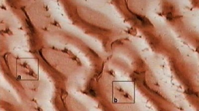 But shortly after that. maybe on the same day, Andreas popped into this office where we are talking now, and he showed me images, like this one. I mean this is really striking. It looks extremely weird. You wouldn't expect something like this from a barren planet, and it also has some aesthetic appeal, now these are cute, aren't they? No? Some people would say like they are like a concentration of bacteria in a Petri dish, and other people would say they are like a fur of an animal, and so on. And I said to Andreas, these are the most mind-boggling scientific images I have seen in the last two years.
